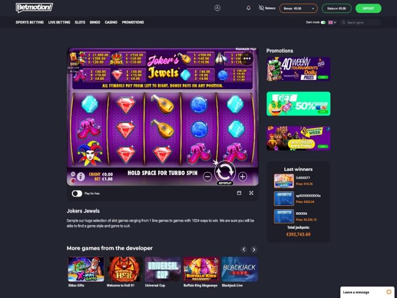 Помимо игр в казино, Betmotion предлагает своим игрокам ставки на спорт и покер.