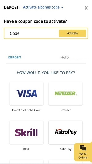 Здесь поддерживается широкий спектр банковских методов, от дебетовых и кредитных карт до таких сервисов, как Skrill и Neteller.