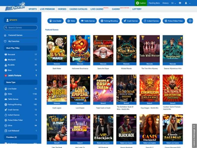 На BetPhoenix представлено довольно много слотов, хотя игры отличаются довольно простым дизайном и функционалом.