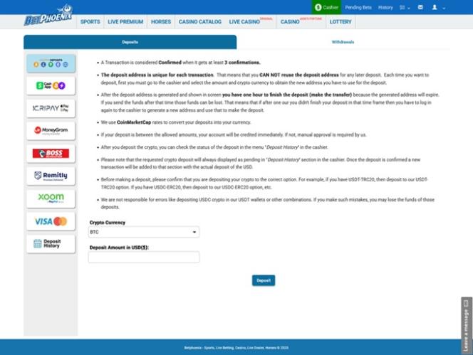 Скриншоты BetPhoenix Casino