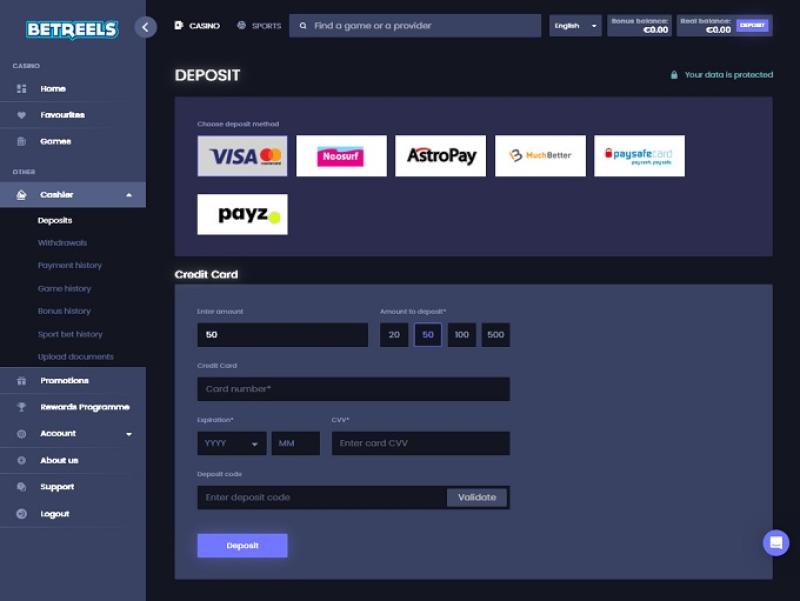 Казино Betreels работает на программном обеспечении Microgaming, Net Entertainment, Playtech, 1x2gaming, Barcrest, Big Time Gaming, ELK Studios, Evolution Gaming, EYECON, lightningboxgames, Play'n GO, Rabcat, Thunderkick, Pragmatic Play, Nolimit City, Red Tiger Gaming, Spinomenal, Kalamba, Skywind, Triple Edge Studios, Northern Lights Gaming, Stormcraft Studios, Switch Studios, All41 Studios, Gluck Games, Gameburger Studios, Pulse 8 Studios, Neon Valley Studios, Shuffle Master, SpinPlay Games, Real Dealer Studios, GONG Gaming, On Air Entertainment, Buck Stakes Entertainment, Games Global, Blueprint Gaming, NextGen, Tom Horn Gaming, WMS, Inspired Gaming, SG Interactive, Red7Mobile, CORE Gaming, Scientific Games, Reel Time Gaming, Iron Dog Studio, Old Skool Studios, Foxium, Just For The Win, PearFiction Studios, Slingshot Studios, Fortune Factory Studios, Gamevy, Crazy Tooth Studio, ReelPlay, Alchemy Gaming, Black Pudding Games, Snowborn Games, Hacksaw Gaming, Gold Coin Studios, Half Pixel Studios, Aurum Signature Studios and Lucksome Gaming , а игры предоставляются через веб-платформу мгновенной игры, которая позволяет зарегистрироваться, внести депозит и играть прямо в браузере. Казино также поддерживает мобильную игру, а это значит, что игроки могут получить доступ к большинству игр через свои смартфоны и планшеты.Blackjack