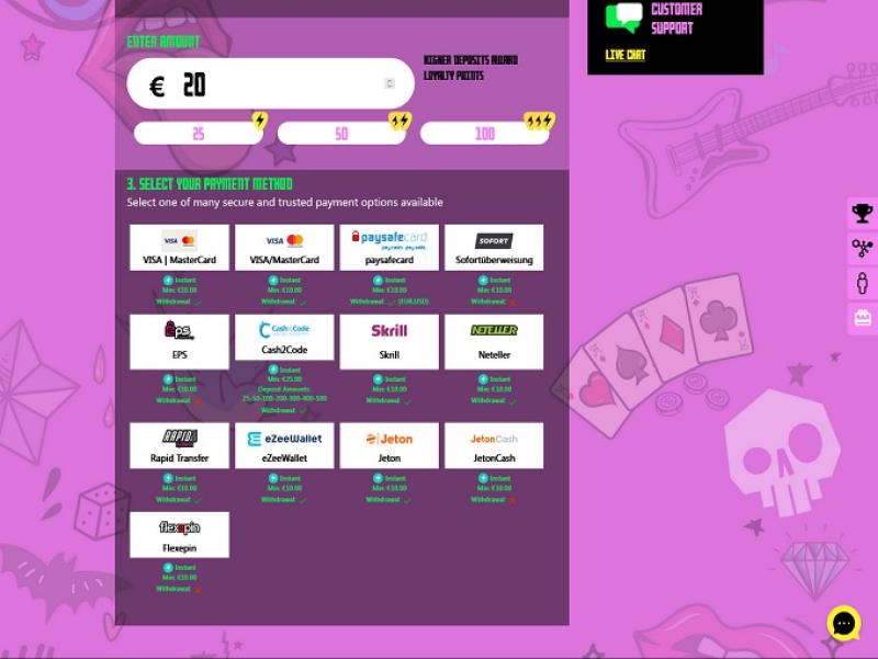 Тем не менее, если вы читаете этот обзор из другого места, вы также можете рассмотреть это интересное онлайн-казино, вдохновленное рок-н-роллом, поскольку оно приветствует и других игроков из разных стран.