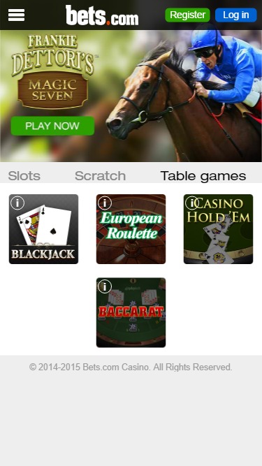 Казино Bets.com работает на программном обеспечении Net Entertainment, Playtech and Ash Gaming , что обеспечивает ему обширную библиотеку, доступную непосредственно через веб-сайт bet.com. Мобильная версия сайта также позволяет игрокам делать ставки с помощью смартфонов и планшетов.Blackjack