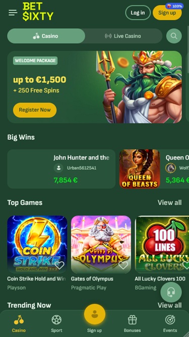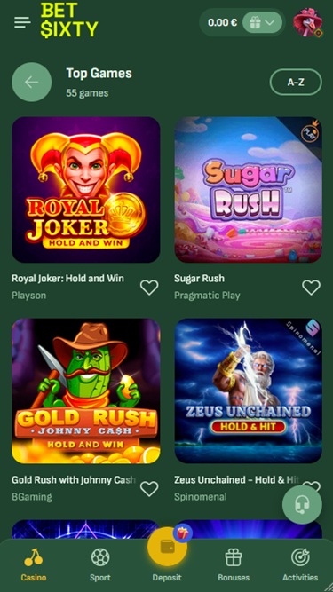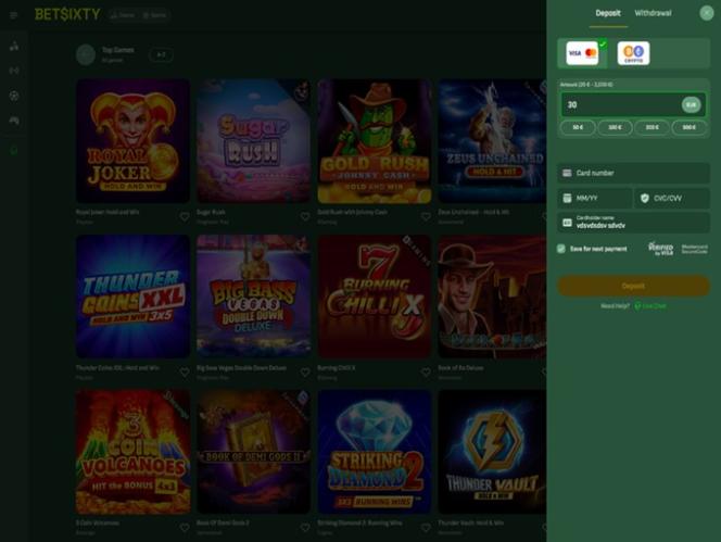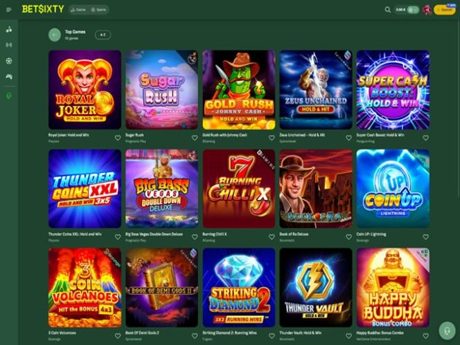Казино BetSixty знает, что его сила заключается в портфолио доступных игр, и предлагаемый каталог, несомненно, впечатляет, учитывая огромное количество релизов, с которыми могут столкнуться игроки. Настольные игры, онлайн-слоты и игры с живыми дилерами — все это здесь, и вы можете часами просто просматривать все доступные варианты.