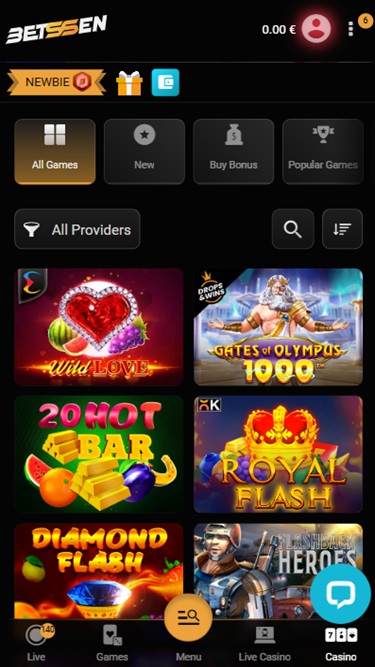 В Betssen собрана одна из самых больших коллекций игровых автоматов! От классических слотов и фруктовых автоматов до свежих, инновационных видеослотов и джекпотов с современной механикой — игроки смогут выбрать из тысяч наименований. Веселье гарантировано!