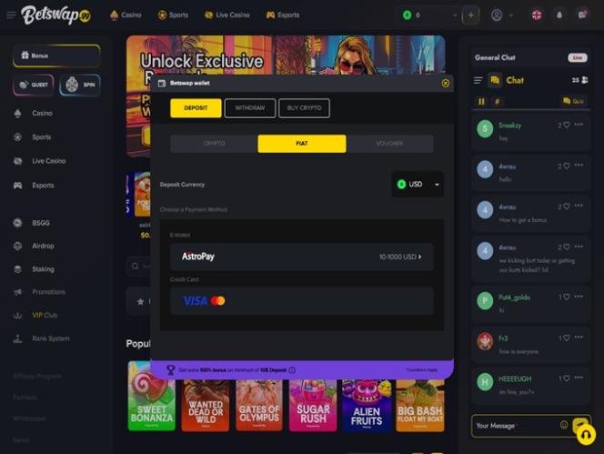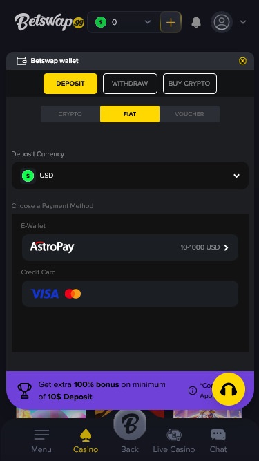 Что касается банковских опций, Betswap.gg использует технологию блокчейн, которая не требует разрешений, доверия и хранения средств. Это означает, что игроки могут использовать такие криптовалюты, как Bitcoin, Litecoin, Tether и Ethereum.