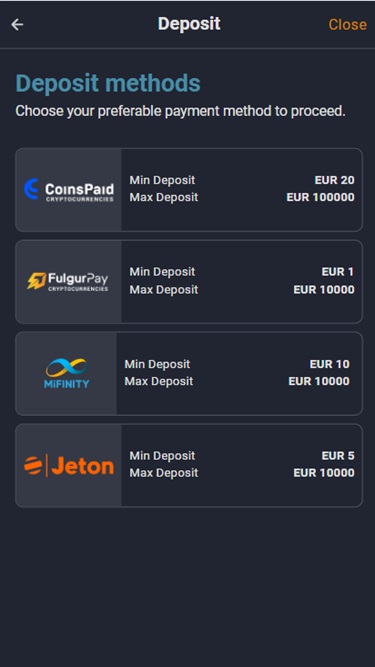 Что касается способов оплаты, выбор довольно скромный, но поддерживается множество валют. Кроме того, время обработки платежа немного дольше, а лимиты вывода средств ниже среднего по отрасли.