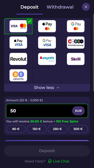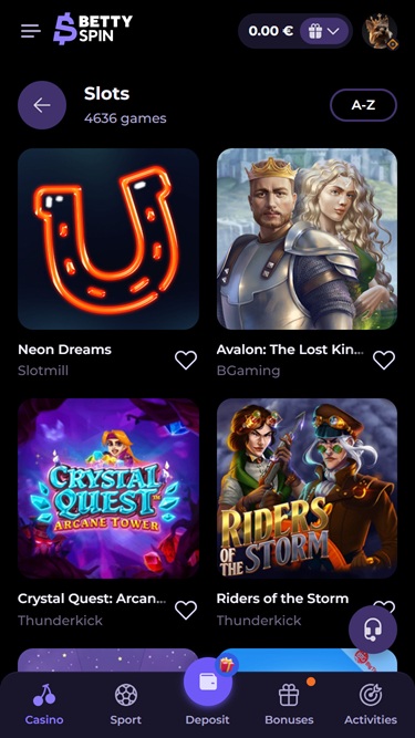 Разделы «Казино», «Live Casino» и «Спорт» имеют собственные выпадающие меню, позволяющие быстро находить ваши любимые игры и виды спорта. Также есть отдельный раздел киберспорта, если вас это интересует!