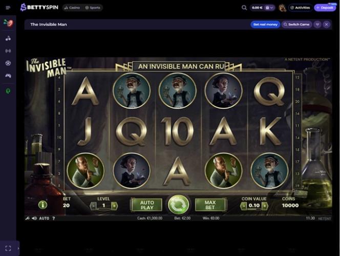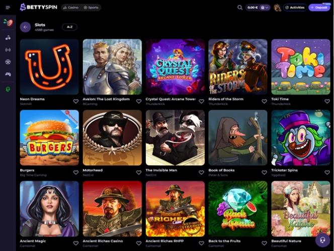 Bettyspin предлагает огромное количество различных игр , включая широкий выбор слотов. В их число входят игры от многих известных провайдеров индустрии, таких как BGaming , Thunderkick, Mascot Gaming, Endorphina, Reflex Gaming, Amusnet Interactive , Push Gaming и многих других!