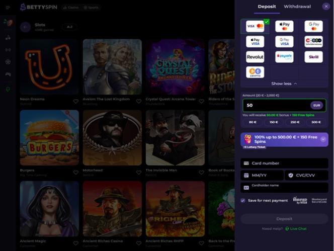 Bettyspin — это онлайн-казино и букмекерская контора, дружественные к криптовалютам , лицензированные и регулируемые Управлением по азартным играм Кюрасао. Независимо от того, увлекаетесь ли вы онлайн-слотами, блэкджеком, рулеткой или любой другой игрой казино, скорее всего, вы без труда найдете здесь все, что вам нужно.