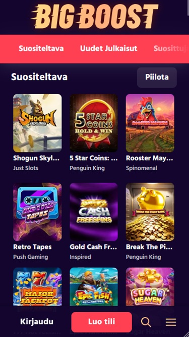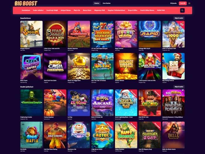Этот онлайн- бренд предлагает игры для казино, разработанные как ведущими компаниями индустрии iGaming, так и многочисленными новыми, креативными игровыми студиями. Хотя слоты являются наиболее распространенной категорией игр, остальные доступные коллекции игр также наполнены первоклассным контентом. Давайте посмотрим на лобби BigBoost!