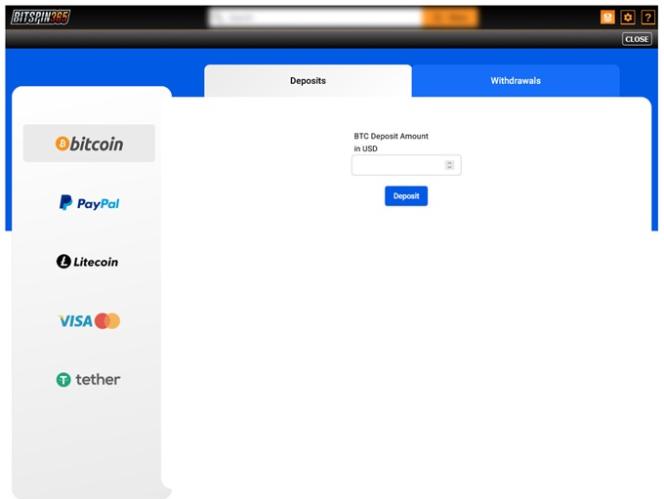 Что касается способов оплаты, игроки Bitspin365 могут использовать различные варианты для вывода и пополнения средств, включая Visa , Mastercard , Google Pay , Apple Pay и PayPal . Игроки также могут использовать современные криптовалюты, такие как Bitcoin , Litecoin , Ethereum и Tether .