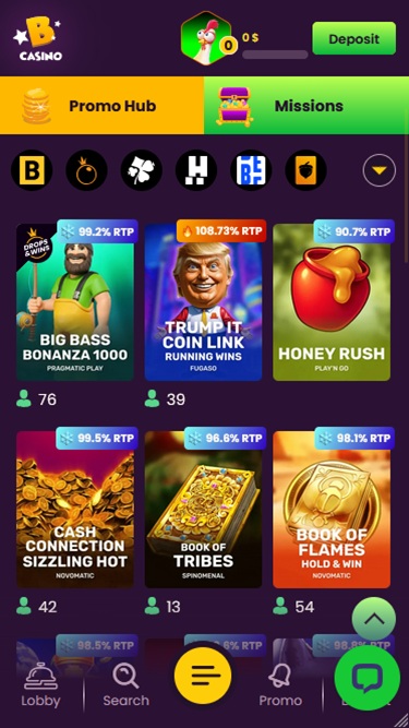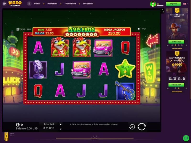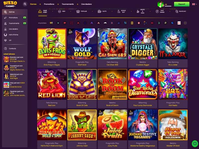 В случае с Bizzo, длинный список поставщиков казино обеспечил разделу слотов множество игр с высоким рейтингом: Cazombie, It's a Joker, 777 Spinbox, Elvis Frog in Vegas, Hot & Spicy, Johnny Cash, Book of Eye, Assasin Moon Hyper Hold, Mechanical Clover, 100 Joker Staxx 100 Lines, Take Olympus, Startup Valley, Africa Cold 2 Treasure Way, #buyBonus of Maya, Book of Cats, Wolf Power Hold and Win, Moon Sisters: Hold and Win, 3 Coins, Book of Cai Shen, Book of Divine, Book of Tribes Reloaded, Buffalo Rampage, Fire in the Hole xBomb, Four Lucky Diamonds, Kitsune's Scrolls Expanded Edition, Egyptian Dreams Deluxe, Jellyfish Flow, Knockout Football, Knockout Football Rush, London Hunter, Magic Oak, Presto!, Pumpkin Патч, деревня Санты...