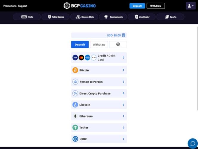 В Black Chip Poker вы можете совершать платежи с помощью популярных карт, таких как Visa, MasterCard и American Express , а также используя другие традиционные способы, например, чеки и онлайн-платежные системы. Как уже упоминалось, эта платформа казино также поддерживает криптовалюты , позволяя игрокам совершать транзакции в Bitcoin, Ethereum, Litecoin, USDT и других цифровых монетах.