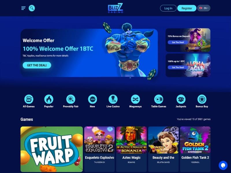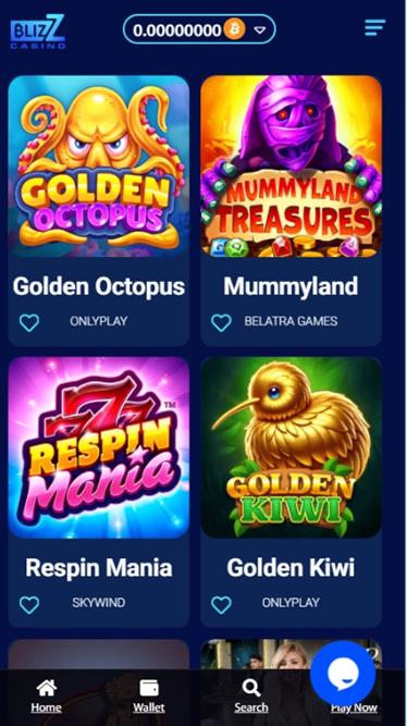 Богатая игровая библиотека разделена на разделы «Казино» и «Live Casino» , а также проводятся скачки и акции, чтобы разнообразить пребывание игроков в Blizz Casino.