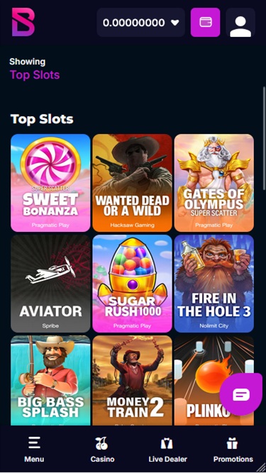 С самого начала сайт встречает вас элегантным и современным интерфейсом. Благодаря меню, расположенному слева, вы сможете быстро перейти к разделам казино, игры с живыми дилерами, акций, условий и положений, а также поддержки. В правом верхнем углу находятся баланс вашего счета, кнопка пополнения и, конечно же, настройки вашего профиля.