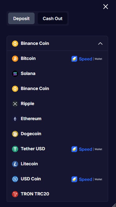 Учитывая, что это казино ориентировано исключительно на криптовалюты, неудивительно, что оно предлагает довольно много различных криптовалют для пополнения счета и вывода средств , среди которых Bitcoin , Ethereum и Tron. По данным платформы, транзакции обрабатываются очень быстро, большинство из них — за считанные минуты!