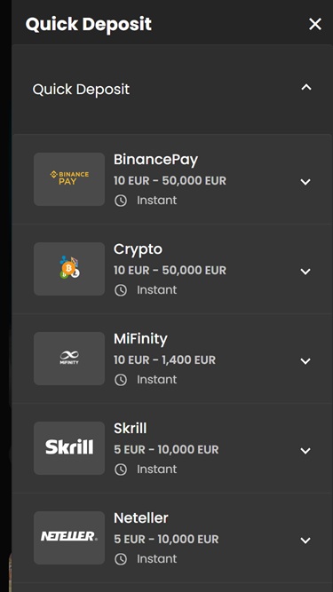 💰 Минимальный депозит€5 /€10 (Crypto)
