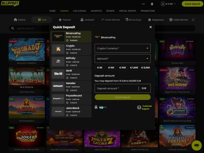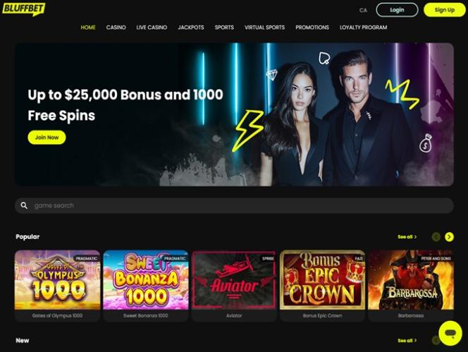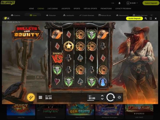 Bluffbet — это игорный сайт и крупная букмекерская контора, предлагающая широкий выбор игр казино и вариантов ставок на спорт. Бренд ориентирован в первую очередь на игроков из Канады и обещает предоставить им обширный ассортимент игр, включая слоты на реальные деньги, игры с живыми дилерами и настольные игры, а также выгодную программу акций с бонусами и различными вознаграждениями.
