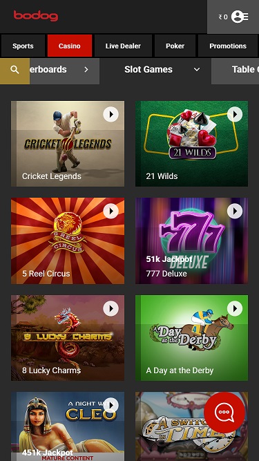 Помимо стандартных игр казино, Bodog India предлагает своим клиентам полноценную букмекерскую контору, покерный зал и казино с живыми дилерами.