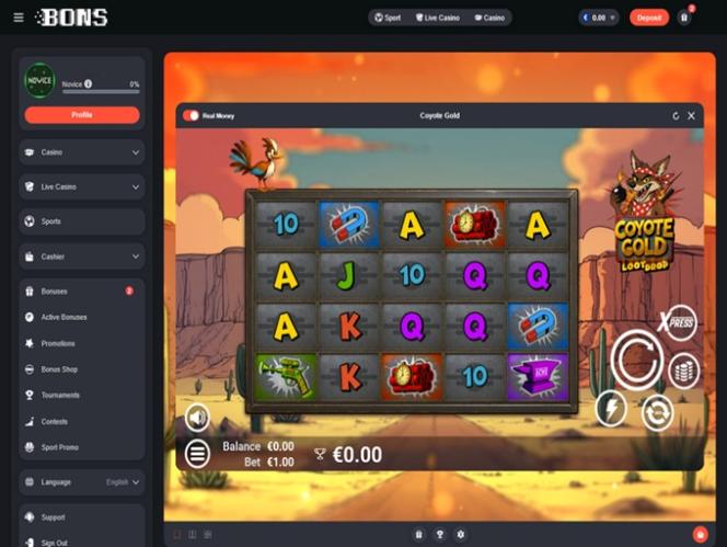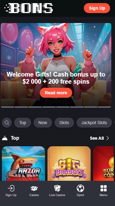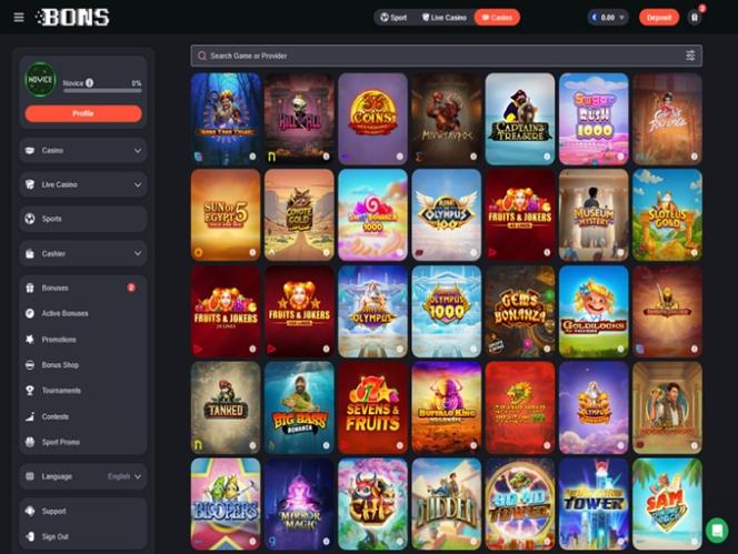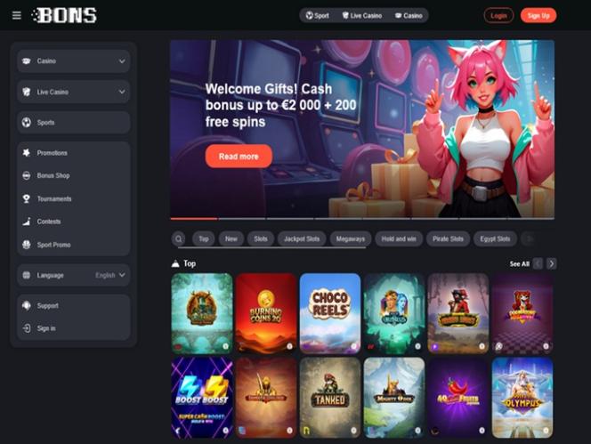 Казино ориентировано в основном на игроков из Японии, Южной Кореи и Индии и работает на платформах ведущих iGaming-компаний. «Bons» расшифровывается как «Ставки на спорт», но предложение казино весьма впечатляет. Игроки могут попробовать игры из огромной коллекции, насчитывающей более 4000 онлайн-слотов . Кроме того, игроки могут рассчитывать на не менее впечатляющие разделы игр с живыми дилерами и игр казино.