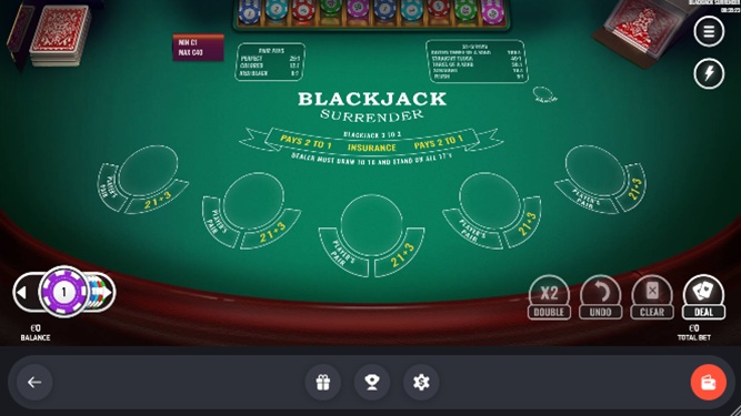 | Blackjack Surrender | Стоять | Нет | Любые 2 | 1 | Нет | - | - | Да | 99.65% | 6 | Нет |