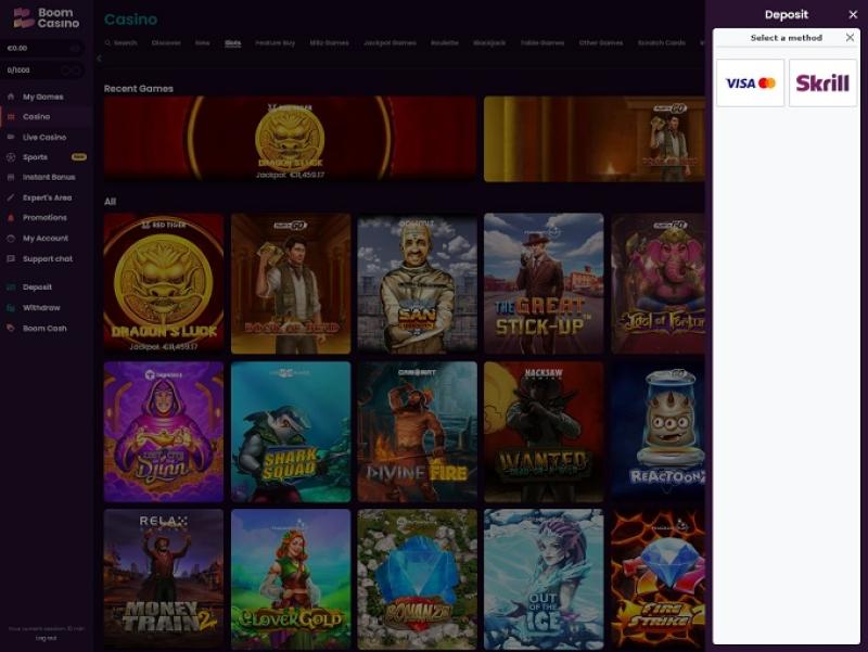 Казино Boom работает на программном обеспечении Microgaming, Amatic Industries, Big Time Gaming, iSoftBet, Novomatic, Oryx, Play'n GO, playson, Quickspin, Relax Gaming, Yggdrasil, Endorphina, Wazdan, Booming Games, Stakelogic, Pragmatic Play, Felt Gaming, Red Rake Gaming, Fantasma Games, FunFair, Kalamba, Spin Games, Skywind, Triple Edge Studios, Northern Lights Gaming, Evoplay, Stormcraft Studios, Switch Studios, Electric Elephant Games, Pocket Games Soft, Bulletproof Games, All41 Studios, Gluck Games, Gameburger Studios, Pulse 8 Studios, Neon Valley Studios, Golden Rock Studios, Spearhead Studios, Swintt, SpinPlay Games, Mancala Gaming, HungryBear Gaming, Real Dealer Studios, Blue Guru Games, On Air Entertainment, PureRNG, Buck Stakes Entertainment, Caleta Gaming, Games Global, bluberi, Greentube, Leander Games, Gamomat, Bally Wulff, Old Skool Studios, Reflex Gaming, Storm Gaming Technology, Wild Streak Gaming, Slingshot Studios, Fortune Factory Studios, Jade Rabbit Gaming, RubyPlay, 4ThePlayer, AvatarUX, Gamevy, Crazy Tooth Studio, High 5 Games, ReelPlay, Japan Technicals Games, Alchemy Gaming, BB Games, Snowborn Games, Boomerang Studios, Hacksaw Gaming, Max Win Gaming, Gold Coin Studios, Bang Bang Games, Arcadem, SilverBack Gaming, Peter And Sons, Eurostar Studios, Aurum Signature Studios, Onlyplay, Armadillo Studios, FlipLuck, Area Vegas, RAW iGaming, Bombay Live, 3 Oaks Gaming, Wishbone Games, Spribe, Circular Arrow, Print Studios, Gaming Corps, Four Leaf Gaming, Nailed It! Games, Atomic Slot Lab, Neko Games, Reel Kingdom, Oros Gaming, Givme Games, JVL and Indigo Magic , а игры представлены в привлекательном веб-формате. Сайт прост в навигации и совместим как с настольными компьютерами, так и с мобильными устройствами, что позволяет играть везде, где есть подключение к интернету.