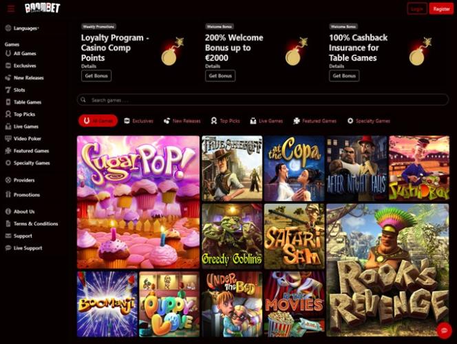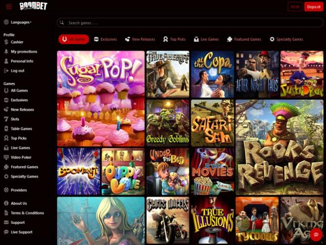 В казино Boombet представлено огромное количество видео- и классических игровых автоматов — на сайте доступно более 600 игр. Сайт может похвастаться играми от крупных разработчиков, таких как Microgaming, и игроки найдут широкий выбор лицензированных и уникальных игр. Также доступны мобильные слоты, так что вы можете играть где угодно, где есть подключение к интернету.