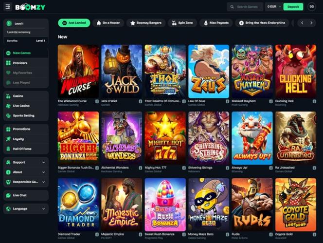 В казино Boomzy представлены тысячи захватывающих игр от таких уважаемых гигантов индустрии iGaming, как Evolution Gaming, Relax Gaming , Nolimit City, Endorphina, Hacksaw Gaming и Pragmatic Play, и это лишь некоторые из них.