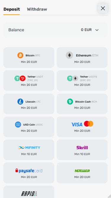 Помимо традиционных валют, игроки смогут вносить и выводить средства в Bitcoin, Bitcoin Cash, Ethereum, Tether, USD Coin, Litecoin и других.