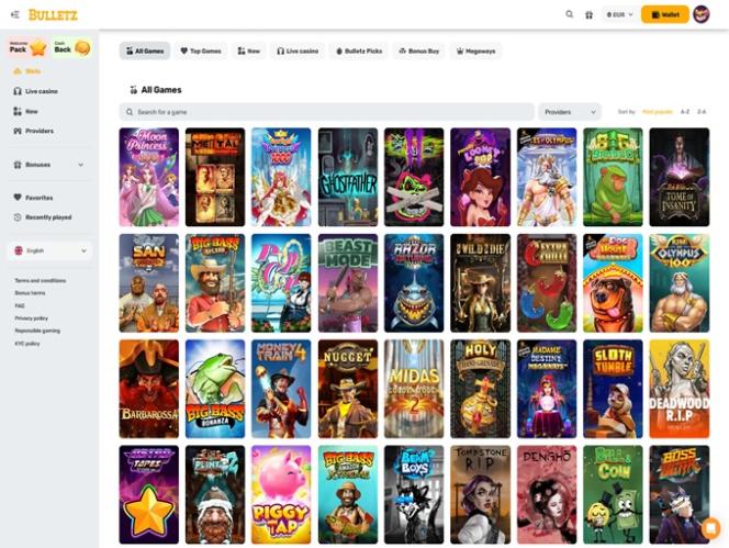 Наиболее распространенной категорией на Bulletz являются онлайн-слоты. Оператор предлагает более четырех тысяч игровых автоматов, и игроки смогут опробовать первоклассные игры, включая Megaways, Bonus Buys и другие.
