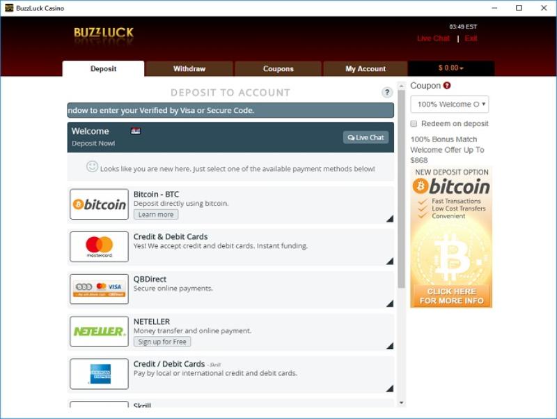 Варианты банковских операций в Buzzluck Casino