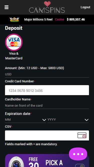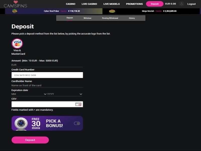 Банковская система в CamSpins хороша, поскольку казино предлагает множество различных способов пополнения и вывода средств. Сайт своевременно выплачивает выигрыши, а команда менеджеров казино имеет отличную репутацию в плане обеспечения выигрышей для игроков.