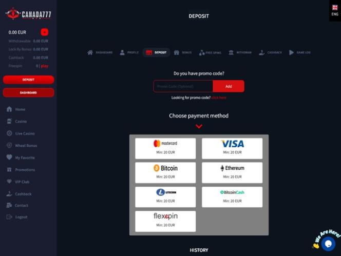 В казино Canada777 игроки смогут использовать биткойн и другие популярные криптовалюты, поэтому, если вы перешли на азартные игры с использованием криптовалюты, вы можете рассчитывать на сверхбыстрые пополнения и снятия средств . Игроки также могут совершать банковские переводы, использовать платежные карты или другие онлайн-платежные системы.