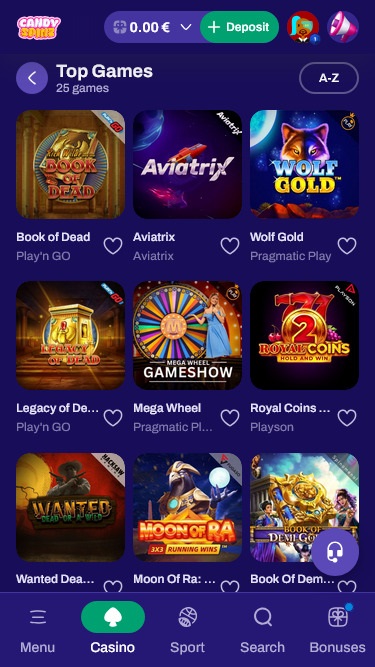 Одна из главных причин, по которой Candyspinz удалось за сравнительно короткое время привлечь большую аудиторию игроков, заключается в том, что компания вложила много усилий и ресурсов в расширение своей игровой библиотеки, которая насчитывает тысячи игр в десятках категорий и жанров.
