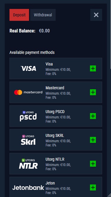 Если вас впечатлила библиотека игр казино и количество доступных игр, имейте в виду, что этот оператор на этом не останавливается. Количество доступных способов оплаты также впечатляет, и мы уверены, что каждый участник казино сможет найти здесь подходящий для себя вариант. Игроки могут совершать платежи как с помощью известных и надежных традиционных методов, так и с помощью быстрых и популярных криптовалютных платежей.