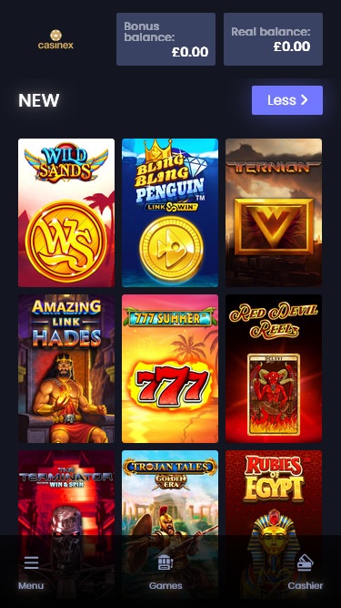 Процесс регистрации прост и быстр, а найти подходящую игру в Casinex очень легко! Если добавить к этому тот факт, что сайт идеально оптимизирован как для мобильных устройств , так и для компьютеров, можно сказать, что общее впечатление от этого казино положительное. А теперь давайте посмотрим на предлагаемые игры!