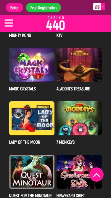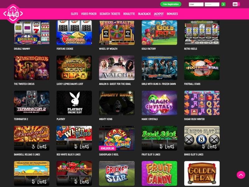 В казино 440 доступны сотни игровых автоматов, большинство из которых относятся к категории видеослотов. Казино также предлагает мобильные слоты и прогрессивные джекпоты, и игроки могут стать миллионерами всего одним щелчком мыши.