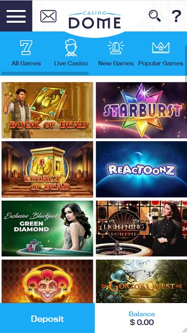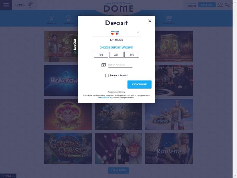 В дополнение к стандартному набору игр, игроки Casino Dome найдут на сайте игры с живыми дилерами от Evolution. Это дает возможность игрокам играть в онлайн-версии таких игр, как блэкджек, рулетка, баккара и другие.