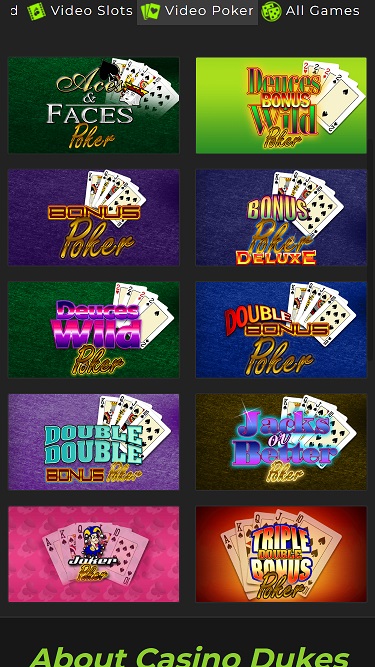 Casino Dukes также является домом для 6 Другие игры перечислены ниже: