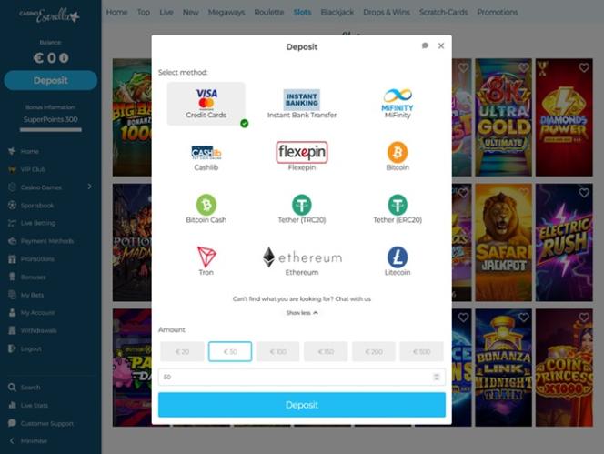 Казино Estrella работает на программном обеспечении Net Entertainment, Playtech, BetSoft, Amatic Industries, Evolution Gaming, Habanero Systems, iSoftBet, Oryx, Play'n GO, playson, Quickspin, Relax Gaming, Saucify, SOFTSWISS, Thunderkick, Visionary iGaming, WM, Yggdrasil, Wazdan, GameArt, Booming Games, Stakelogic, Pragmatic Play, Nolimit City, Felt Gaming, Red Tiger Gaming, Booongo, Air Dice, LuckyStreak, Spinomenal, Red Rake Gaming, Fantasma Games, SYNOT Games, Revolver Gaming, Spin Games, Spinmatic, BGAMING, Northern Lights Gaming, Evoplay, Electric Elephant Games, Bulletproof Games, Mascot Gaming, Spearhead Studios, Swintt, Mancala Gaming, SmartSoft Gaming, Blue Guru Games, Lady Luck Games, Amusnet Interactive, bluberi, Blueprint Gaming, CT Interactive, EveryMatrix, Push Gaming, Genii, Gamomat, Authentic Gaming, Reflex Gaming, Storm Gaming Technology, Wild Streak Gaming, Golden Hero, 4ThePlayer, AvatarUX, ReelPlay, Japan Technicals Games, Rarestone Gaming, Boomerang Studios, Hacksaw Gaming, Max Win Gaming, Bang Bang Games, Arcadem, Slotmill, SilverBack Gaming, Peter And Sons, Armadillo Studios, FlipLuck, Atomic Slot Lab, Reel Kingdom, Indigo Magic, NowNow Gaming, Kitsune Studios, Turbo Games, Penguin King, Octoplay and Red Papaya , и игры казино доступны через веб-платформу. Также доступна мобильная версия сайта для тех, кто хочет играть в казино на ходу.Blackjack