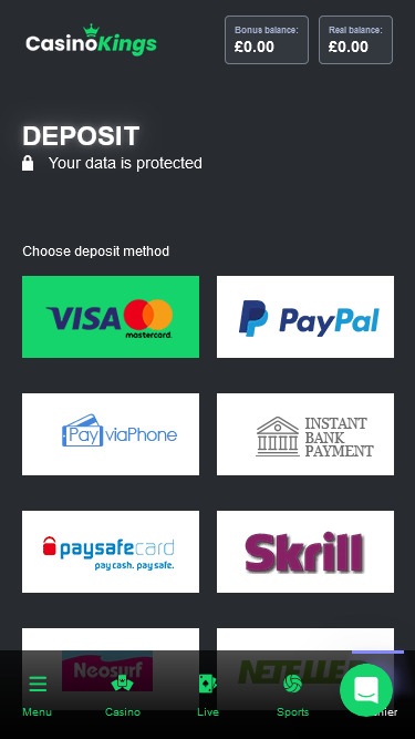 Помимо стандартных игр казино, Casino Kings предлагает игрокам полноценный зал для ставок с живыми дилерами.