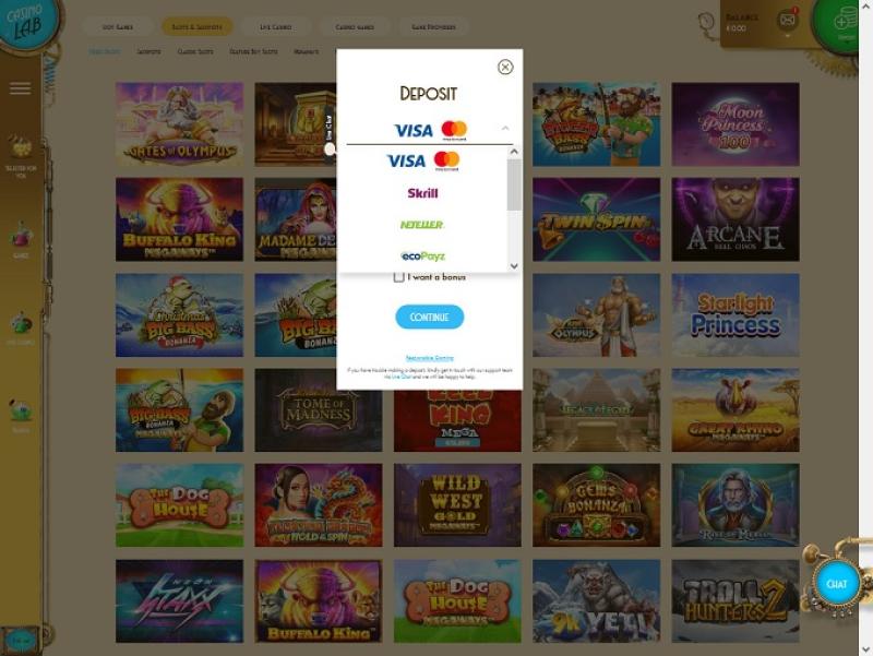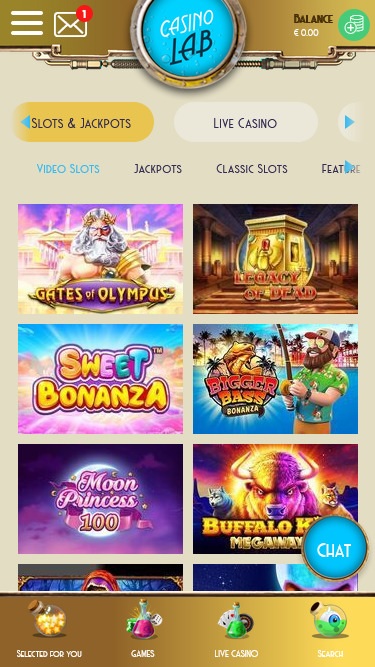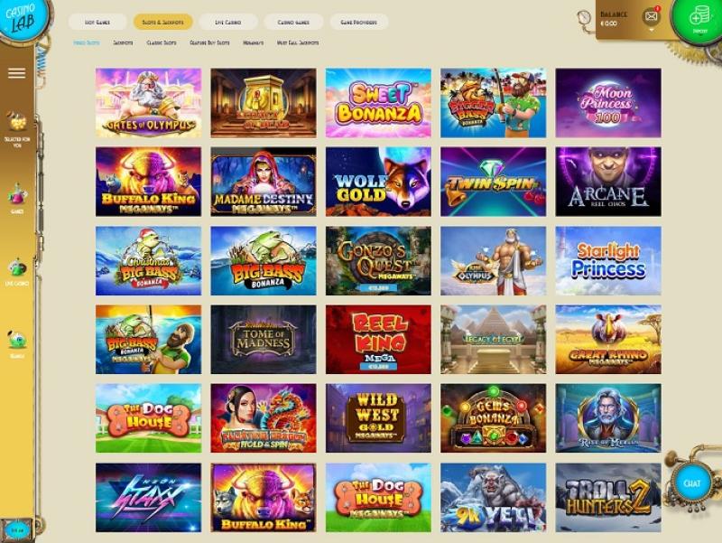 В Casino Lab вы найдете очень хороший выбор игровых автоматов: более 1800 видеослотов от более чем четырех десятков разработчиков, таких как Microgaming, Play'n GO, NetEnt, Quickspin и многих других. Также доступны прогрессивные джекпоты, и подавляющее большинство слотов можно играть на мобильном телефоне или планшете.