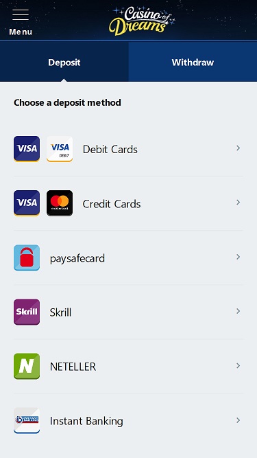 Casino of Dreams работает на программном обеспечении Microgaming, Genesis Gaming, Rabcat, Games Global and NextGen , а игры доступны как через веб-платформу для мгновенной игры, так и через мобильный сайт.