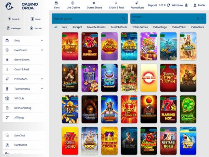 Casino Orca — это платформа, ориентированная на криптовалюты , которая, помимо красивого и стильного дизайна, предлагает быструю и простую регистрацию, а также привлекательный контент, который ищут современные игроки.