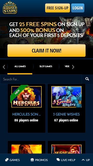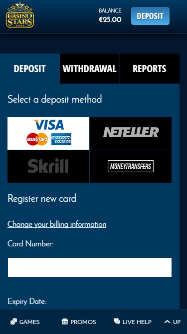 Casino Stars — это онлайн-букмекерская контора, основанная в 2013 году и обслуживающая европейский рынок ставок. Казино имеет интересную структуру, а его библиотека несколько отличается от того, что игроки могли видеть раньше. Благодаря привлекательному дизайну и уникальным акциям, Casino Stars — это казино, на которое определенно стоит обратить внимание, если вы ищете что-то новое.Информация о казино