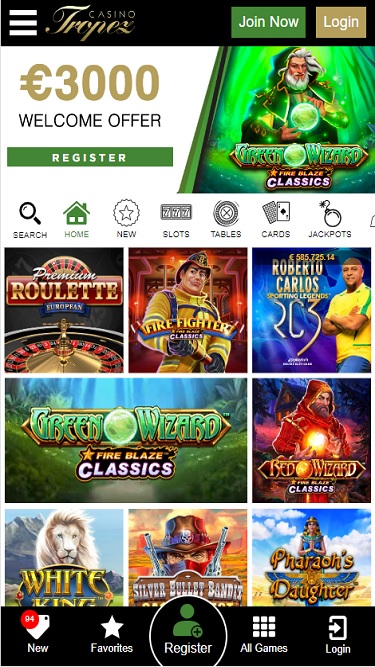 В казино Tropez представлено более 400 игр Microgaming, Playtech, BetSoft, 1x2gaming, EYECON, Habanero Systems, iSoftBet, Quickspin, Rabcat, Wazdan, Booming Games, Pragmatic Play, Spinomenal, Skywind, Triple Edge Studios, Northern Lights Gaming, Stormcraft Studios, All41 Studios, Gameburger Studios, Pulse 8 Studios, Slot Factory, Golden Rock Studios, SpinPlay Games, GONG Gaming, Buck Stakes Entertainment, Games Global, Wizard Games, Ash Gaming, Blueprint Gaming, Merkur Gaming, Pariplay, Inspired Gaming, Reel Time Gaming, Iron Dog Studio, Old Skool Studios, Foxium, Just For The Win, PearFiction Studios, Wild Streak Gaming, Slingshot Studios, Fortune Factory Studios, RubyPlay, Alchemy Gaming, Rarestone Gaming, Black Pudding Games, Snowborn Games, Gold Coin Studios, Half Pixel Studios, Eurostar Studios and Aurum Signature Studios доступных как для скачивания, так и для мгновенной игры.