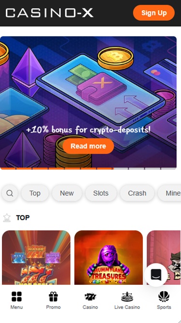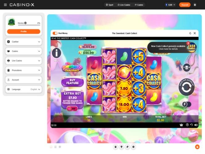 Casino-X работает на программном обеспечении Microgaming, Net Entertainment, Playtech, BetSoft, Amatic Industries, Big Time Gaming, ELK Studios, Evolution Gaming, EYECON, Ezugi, Genesis Gaming, Habanero Systems, iSoftBet, Novomatic, Oryx, Play'n GO, playson, Quickspin, Relax Gaming, Thunderkick, Yggdrasil, Endorphina, Wazdan, Booming Games, Pragmatic Play, Nolimit City, Red Tiger Gaming, Booongo, Spinomenal, Belatra Games, Fantasma Games, Kalamba, Spin Games, Platipus Gaming, Skywind, Triple Edge Studios, BGAMING, Northern Lights Gaming, Stormcraft Studios, OneTouch, Electric Elephant Games, Pocket Games Soft, Bulletproof Games, All41 Studios, Gluck Games, Mascot Gaming, Gameburger Studios, Pulse 8 Studios, Slot Factory, Neon Valley Studios, Radi8 Games, Woohoo Games, SpinPlay Games, HungryBear Gaming, Qora Games, SmartSoft Gaming, KA Gaming, Blue Guru Games, Lady Luck Games, Buck Stakes Entertainment, Caleta Gaming, Elysium Studios, Games Global, Amusnet Interactive, Ash Gaming, bluberi, Greentube, Igrosoft, Tom Horn Gaming, Gamomat, Foxium, Just For The Win, Reflex Gaming, Storm Gaming Technology, PearFiction Studios, Wild Streak Gaming, Slingshot Studios, Fortune Factory Studios, Jade Rabbit Gaming, RubyPlay, 4ThePlayer, AvatarUX, Gamevy, ReelPlay, Rarestone Gaming, Snowborn Games, Boomerang Studios, Hacksaw Gaming, Max Win Gaming, Bang Bang Games, Gamzix, Slotmill, Peter And Sons, Onlyplay, Gamebeat, RAW iGaming, Bombay Live, Aviatrix, Winfinity, 3 Oaks Gaming, Spribe, Print Studios, Gaming Corps, Four Leaf Gaming, Nailed It! Games, Atomic Slot Lab, Reel Kingdom, Givme Games, Indigo Magic, Popiplay, Live88, Galaxsys, Kitsune Studios, InOut Games, Boldplay, Turbo Games and Penguin King , а игры предоставляются через веб-платформу. Также доступен мобильный сайт для тех, кто хочет играть со своих смартфонов и планшетов.