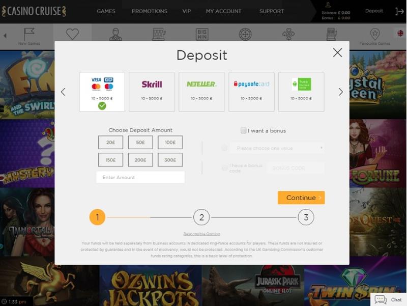 CasinoCruise работает на платформе Microgaming, Net Entertainment, Big Time Gaming, Evolution Gaming, Ezugi, iSoftBet, lightningboxgames, Oryx, Play'n GO, Quickspin, Relax Gaming, Yggdrasil, Wazdan, Pragmatic Play, Red Tiger Gaming, Skillzzgaming, Skywind, Triple Edge Studios, Northern Lights Gaming, Switch Studios, All41 Studios, Gameburger Studios, Neon Valley Studios, Golden Rock Studios, TrueLab Games, SpinPlay Games, GONG Gaming, Buck Stakes Entertainment, Games Global, 2by2 Gaming, Gamomat, Foxium, Just For The Win, PearFiction Studios, Slingshot Studios, Fortune Factory Studios, Crazy Tooth Studio, Alchemy Gaming, Snowborn Games, Gold Coin Studios, Half Pixel Studios, Eurostar Studios and Aurum Signature Studios , которая предоставляет доступ к сотням различных игр от лучших разработчиков онлайн-игр.