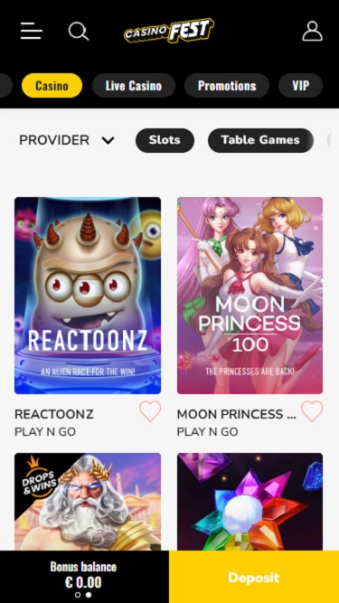 На момент написания этого обзора мы не обнаружили никакой программы лояльности на CasinoFest.